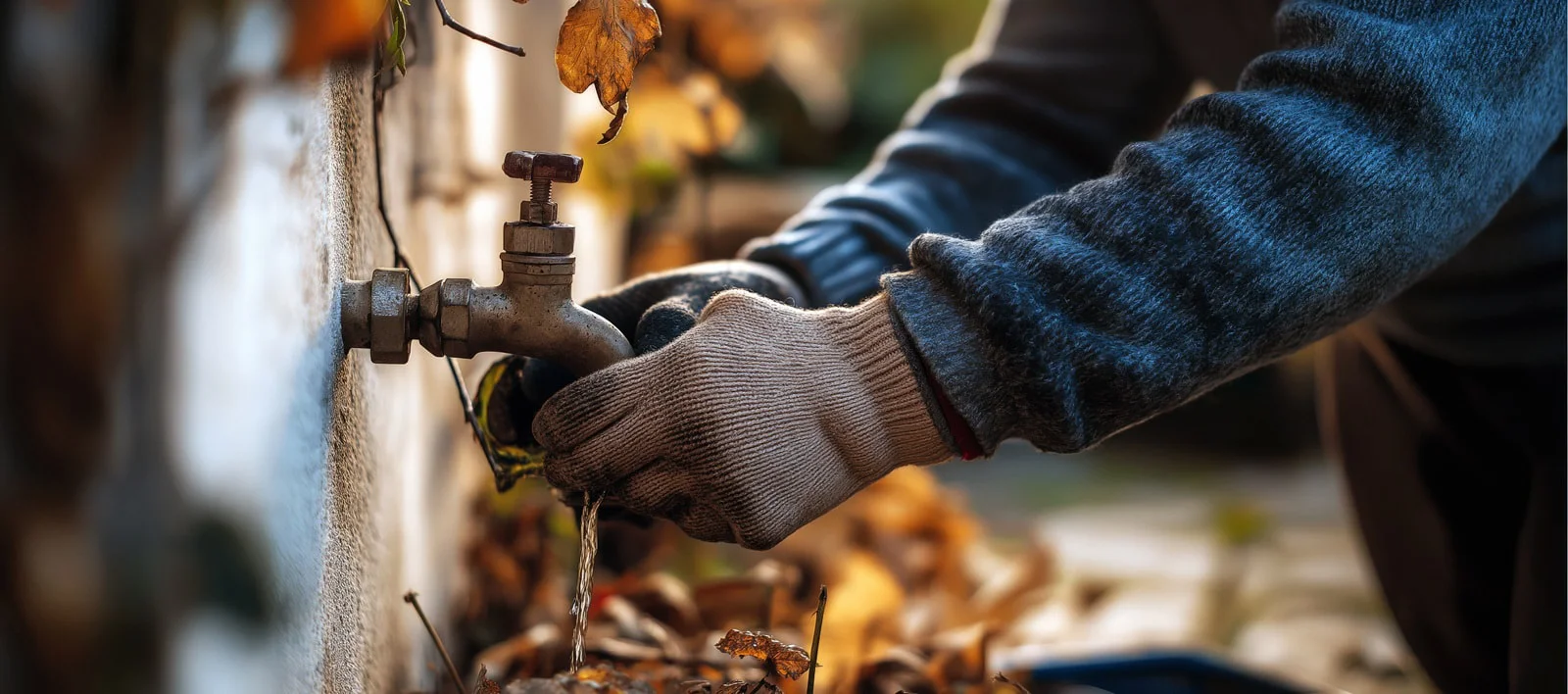 - Disconnect and drain garden hoses; shut off exterior faucets and outside faucets before the first freeze to prevent water from backing up into interior pipes
